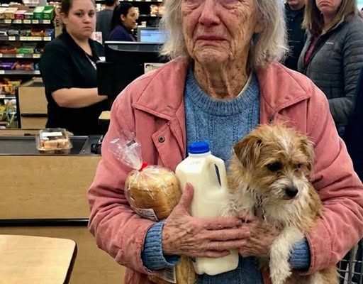 She was small. Old. Wrapped in a coat so worn the cuffs were almost strings. Her back was curved, as if life had been pressing down on her for decades. She put two items on the conveyor: bread and milk.